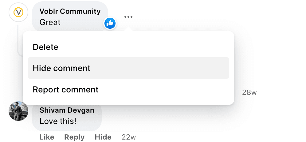 ・Facebookの投稿のコメント欄を開き、非表示にしたいコメントまでスクロールダウンします。 ・コメントの上にマウスを置き、右側にある3点ドッドメニューをクリックします。