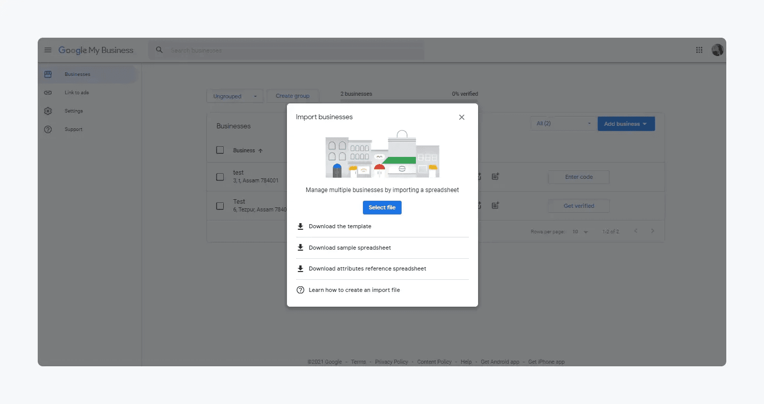フランチャイズや9つ以上の事業所を持つ企業の場合、手動で事業所を追加するのは時間のかかる作業となります。Googleは、以下の手順で一括アップロードツールを利用できるように支援します:
