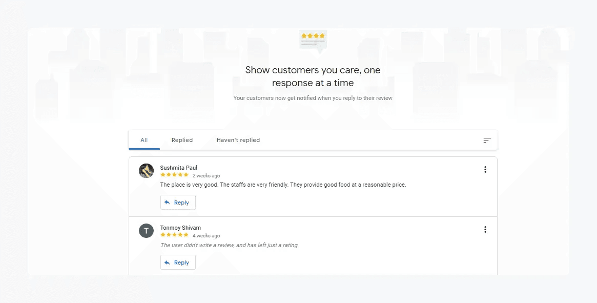 異なるGBPロケーションで受けたレビューを追跡して、素早く返信し、顧客の信頼感を育むことができます。