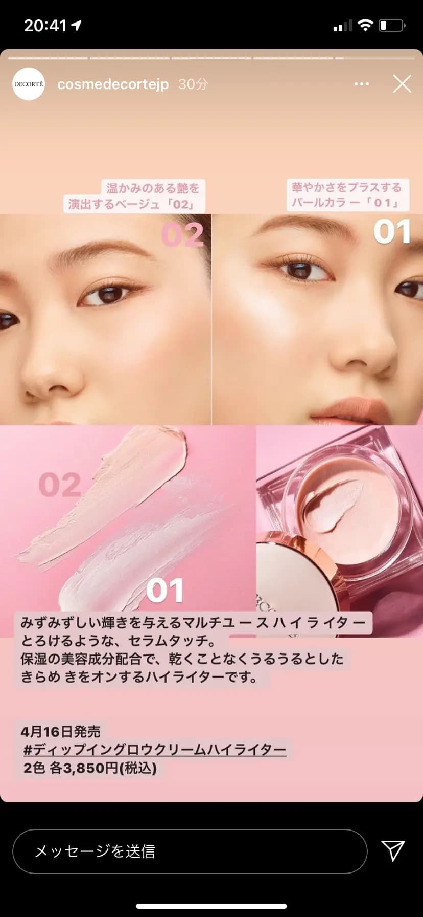 下記は人気高級コスメのブランドが行なっているストーリーズ・マーケティングです。