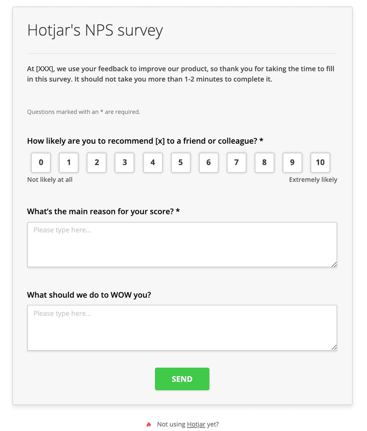NPSはこのように手短に顧客が答えるのが簡単な「満足度アンケート」で、企業側追跡が非常に簡単です。 NPSは基本的に2つの質問のみで構成されており、一般的にブランド、サービス、または製品を評価するためによく使用されます。