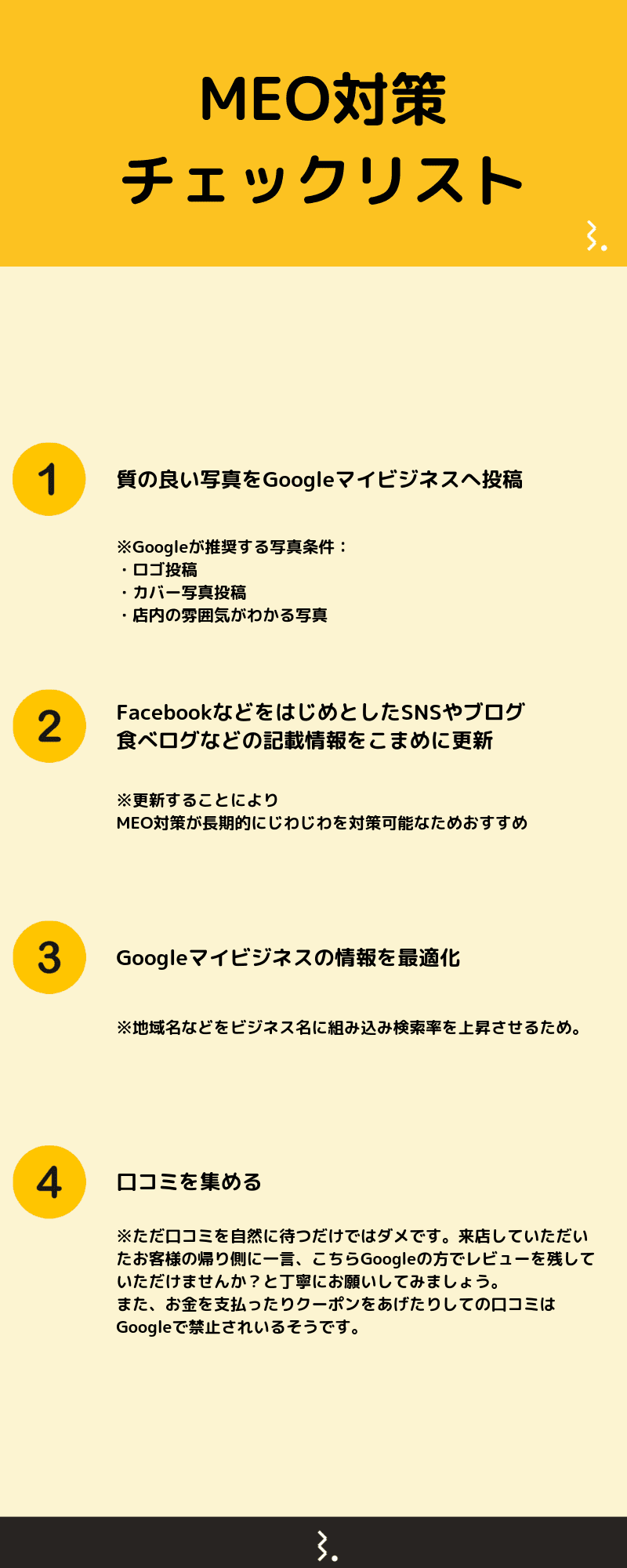 と言っても、どのような事がMEOに関係するかわかりませんよね。 そんなあなたはこちらのチェックリストを確認してみましょう!