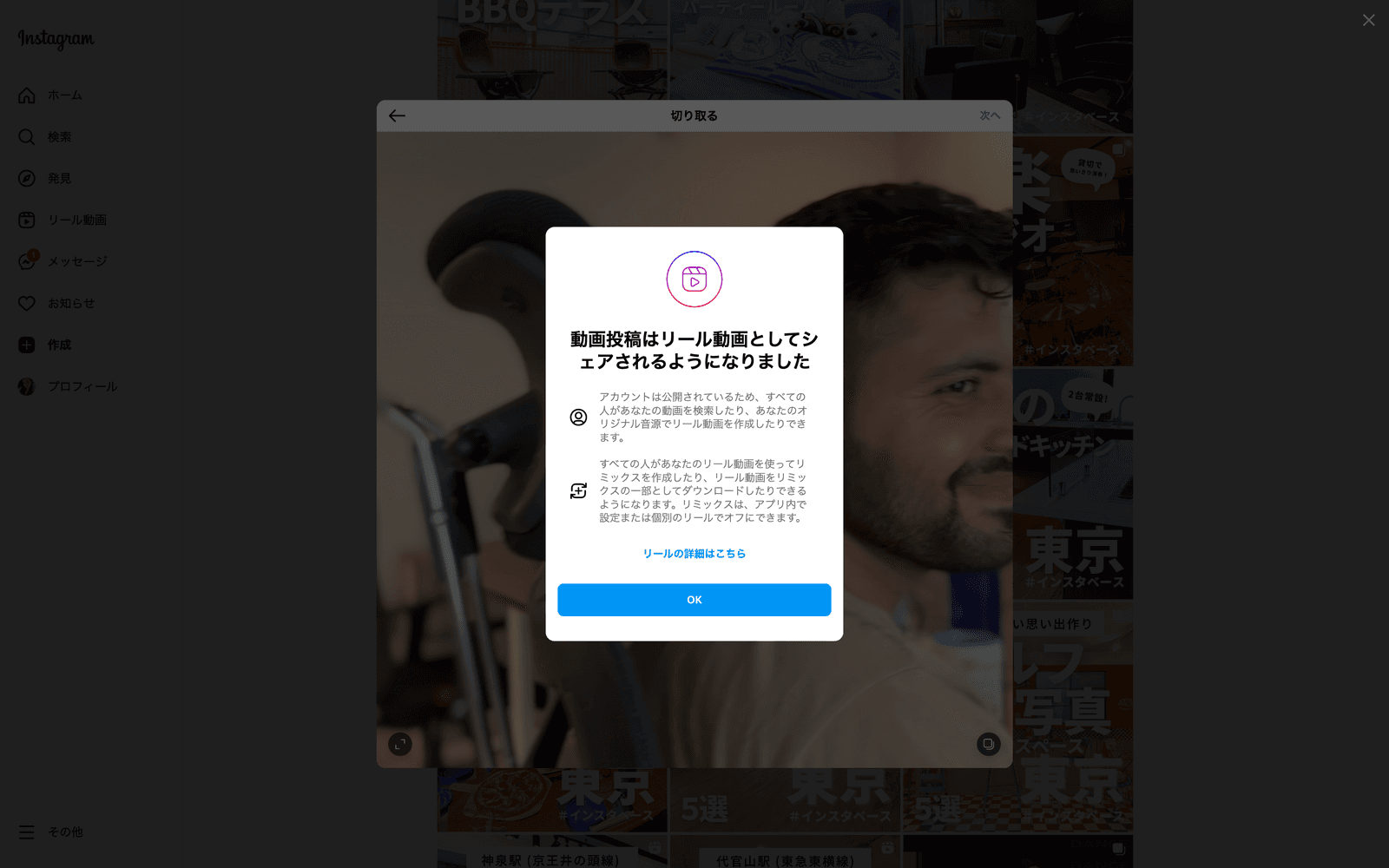 Instagramでアップロードする動画はInstagramの仕様変更により、リール動画として扱われ、カルーセル投稿でアップしても動画のみリールタブに掲載されますのでご注意ください。