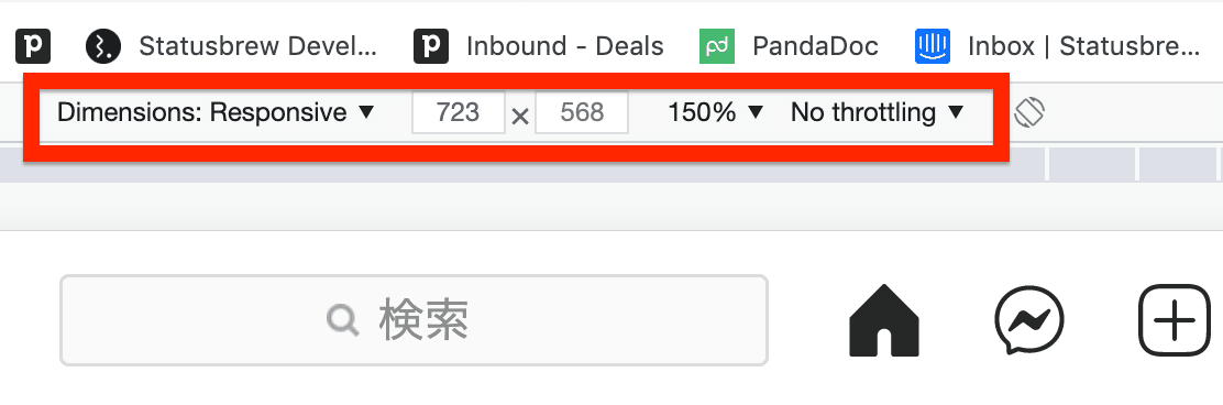 Step 5: クリックすると、中央上部に新しいツールバーが表示され、「ディメンション:レスポンシブ」や「モバイル」などのオプションが表示されます。