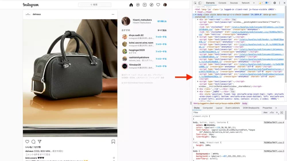 ヒント:上記のデベロッパーツールは、Ctrl + Shift + I (Windowsの場合)でもひらけます。 Command + Opt + IはMacユーザー向けです。