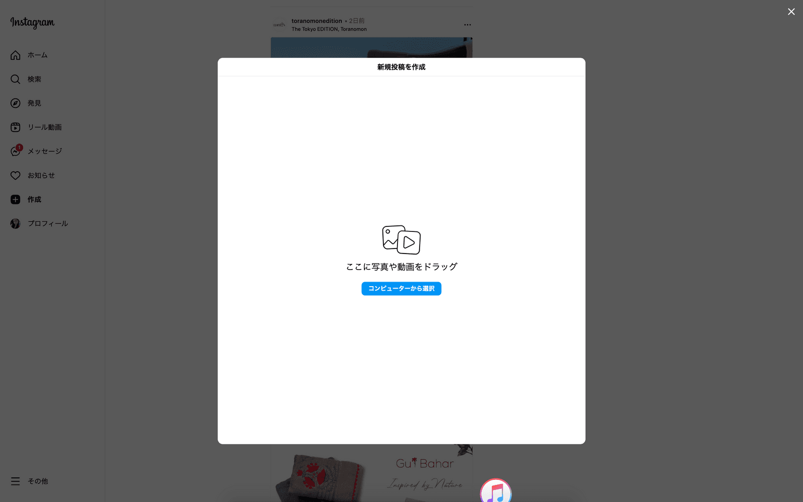 インスタグラムのウェブアプリからもフィード投稿を公開することができます。