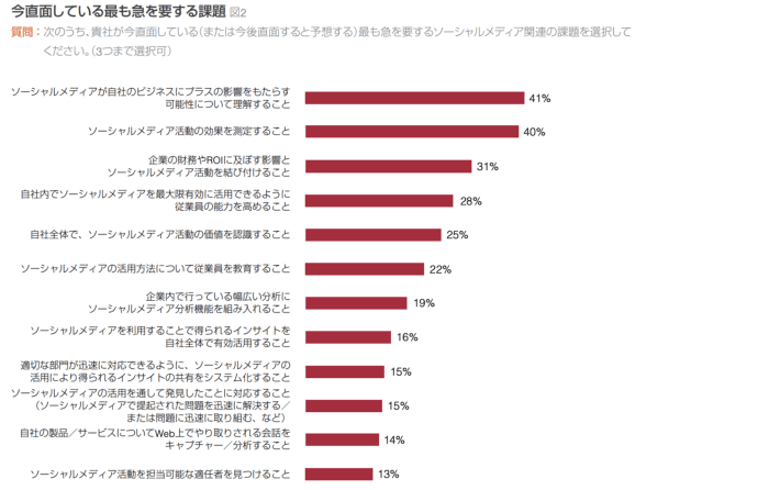 また、企業の31%はソーシャルメディアの効果測定をしていないことも判明しています。それでもCMO調査では、マーケティング担当者のほぼ半数がソーシャルメディアへの投資してもインパクトの大きさを示すことができないと声が上がっています。そのため、あなたの企業のソーシャルメディア戦略が何であれ、初心に戻って基本を確実にカバーしておくためにこちらの記事を執筆しています。