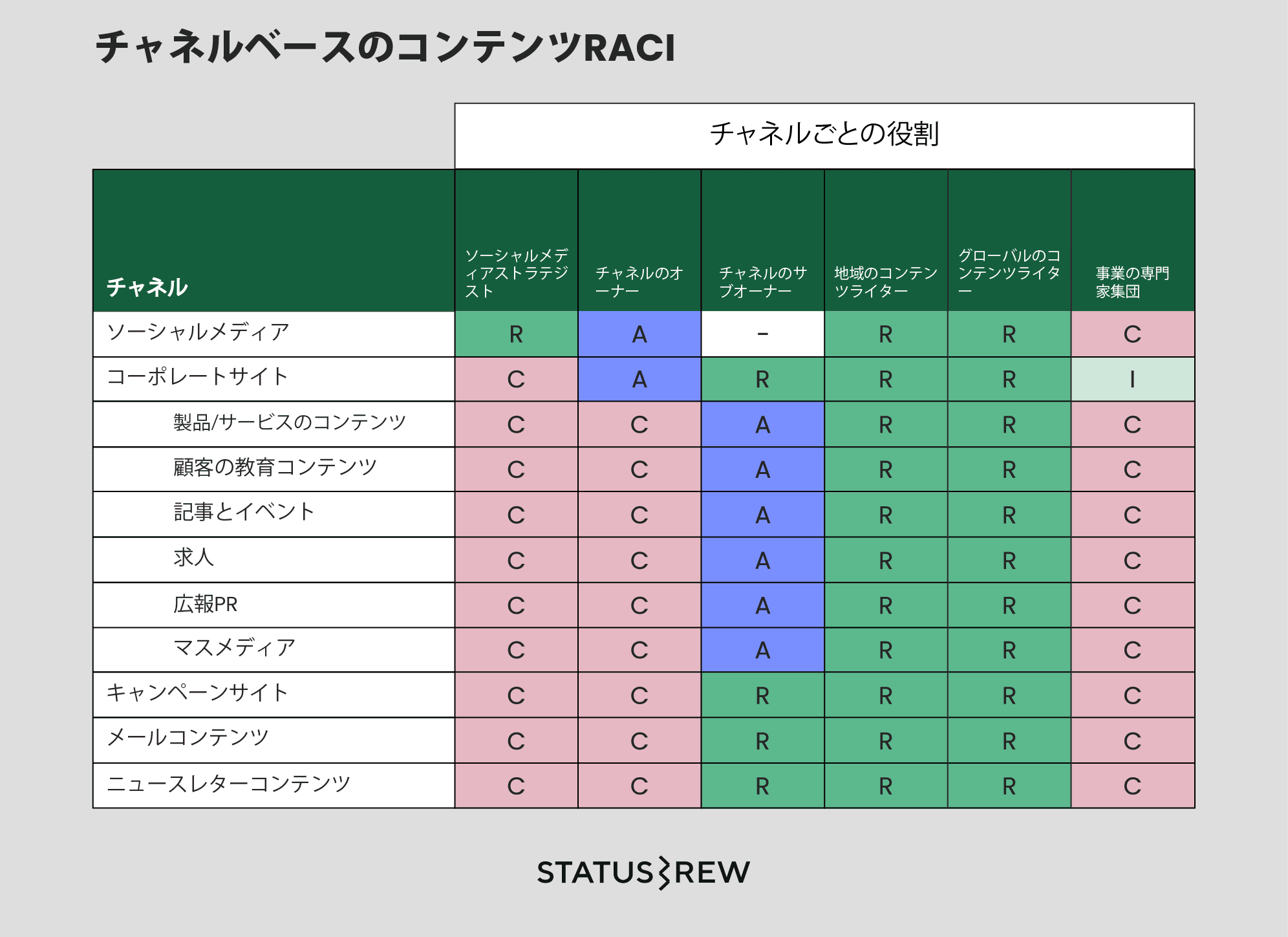 チャネルコンテンツRACI:チャネルごとのコンテンツ役割に関する指示のためのものです。