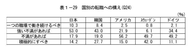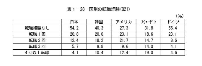 以下の表を見てわかる通り、海外では転職率が日本とは比べものにならなくらい高いです。また、転職に対する考え方が違います。