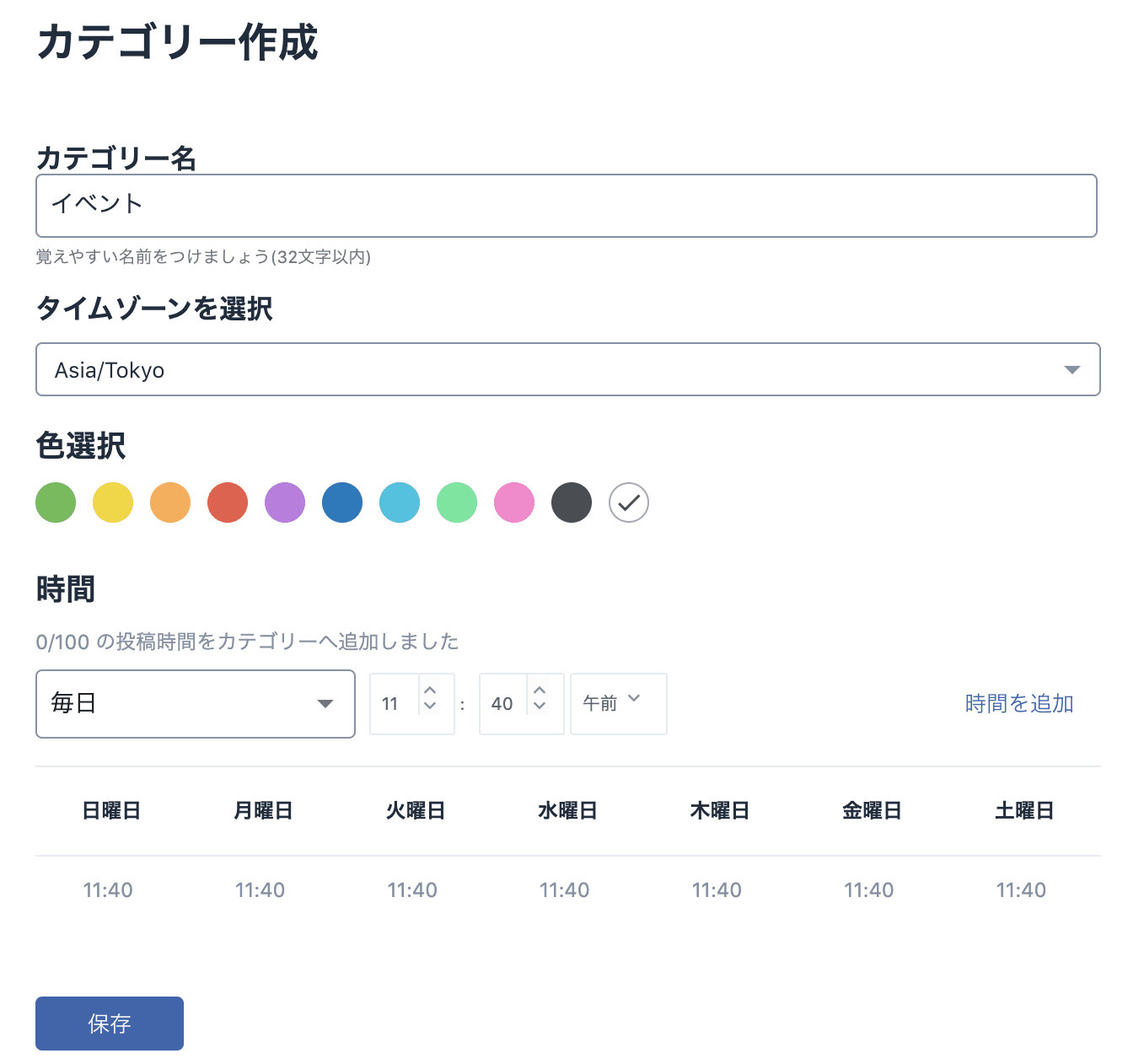 Statusbrewのカテゴリ機能は一言で説明するならば毎週再開される投稿サイクルの繰り返し機能です。いうならば週間のテレビ番組表です。ちょっと表現が古いでしょうか...笑