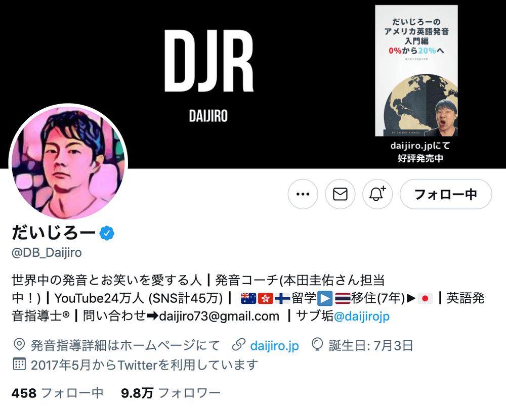Twitterでバズった発音矯正指導士のだいじろーさん