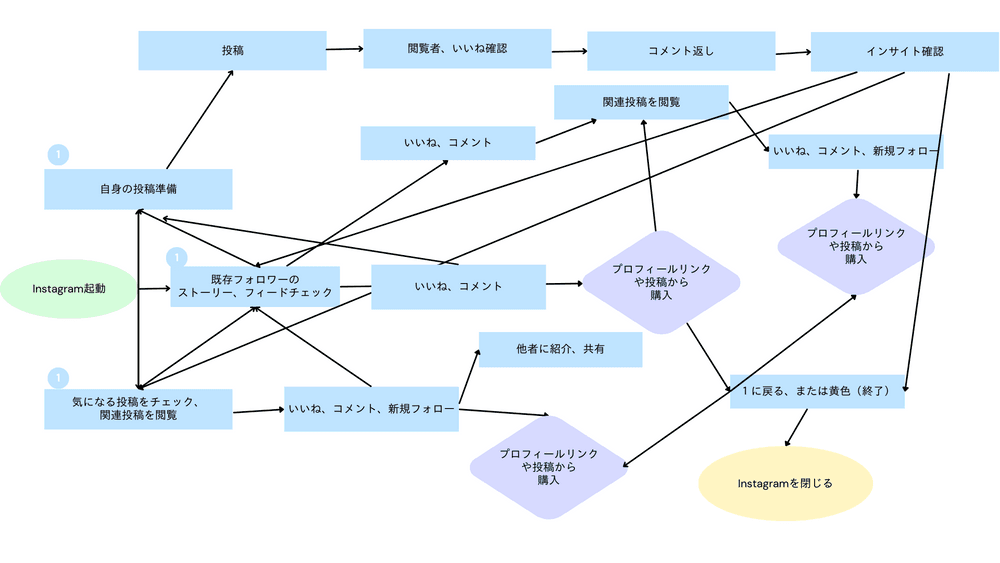 以下にInstagramにおける簡易ユーザーフローを作成します。