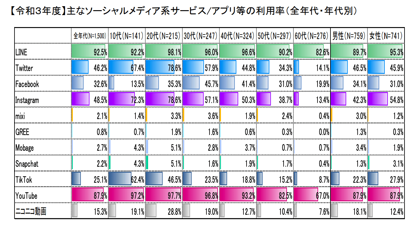出所:総務省情報通信政策研究所「令和3年度情報通信メディアの利用時間と情報行動に関する調査報告書」