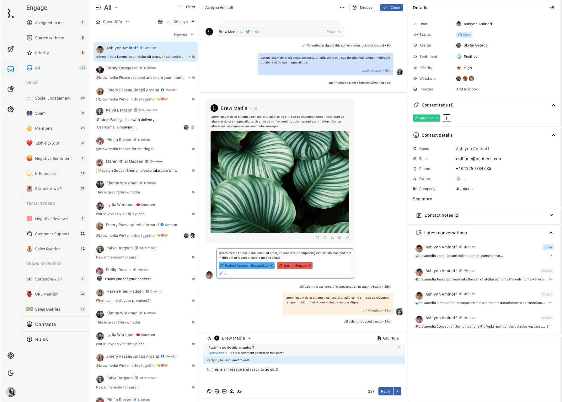 Statusbrewのエンゲージという機能はソーシャルメディアに関するすべてのコメントやDMを受信箱に集計しチケット化して管理できるものです。