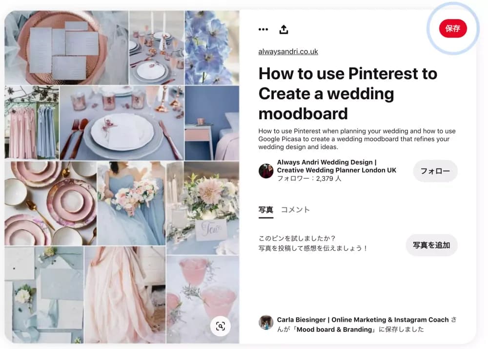 無料で使えるツールはおなじみのPinterestです。それをチーム全体で共有したり、ファイルに保存しておけば、コンテンツを企画するときに簡単にアクセスできるようになります。Mood Boardのテンプレートで検索すれば作り方などたくさん出てくるのでぜひ調べましょう。