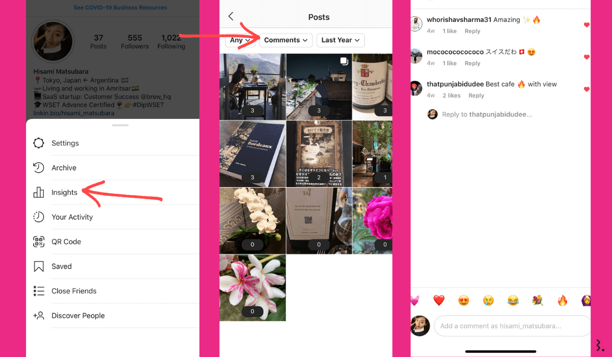 「すべての投稿」を表示することから始め、コメントでソートし、あなたの最もコメントされた投稿をクリックします。これにより、誰が(どんな層が)あなたのコンテンツに積極的に関与しているかを簡単に特定することができます。