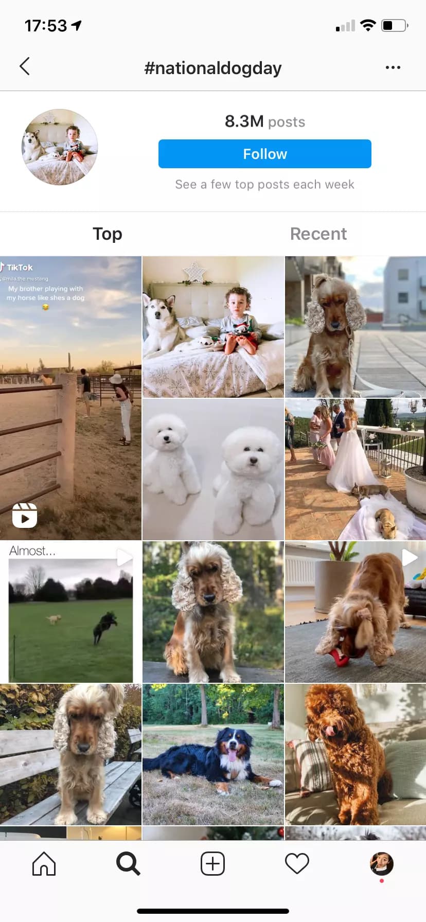 あなたがペット関連グッズのお店をやっていなくても、ちょっとした計画を立てれば、そして適切なハッシュタグを使えば、あなたの投稿が探索(Explore)のページに掲載されるかもしれません。