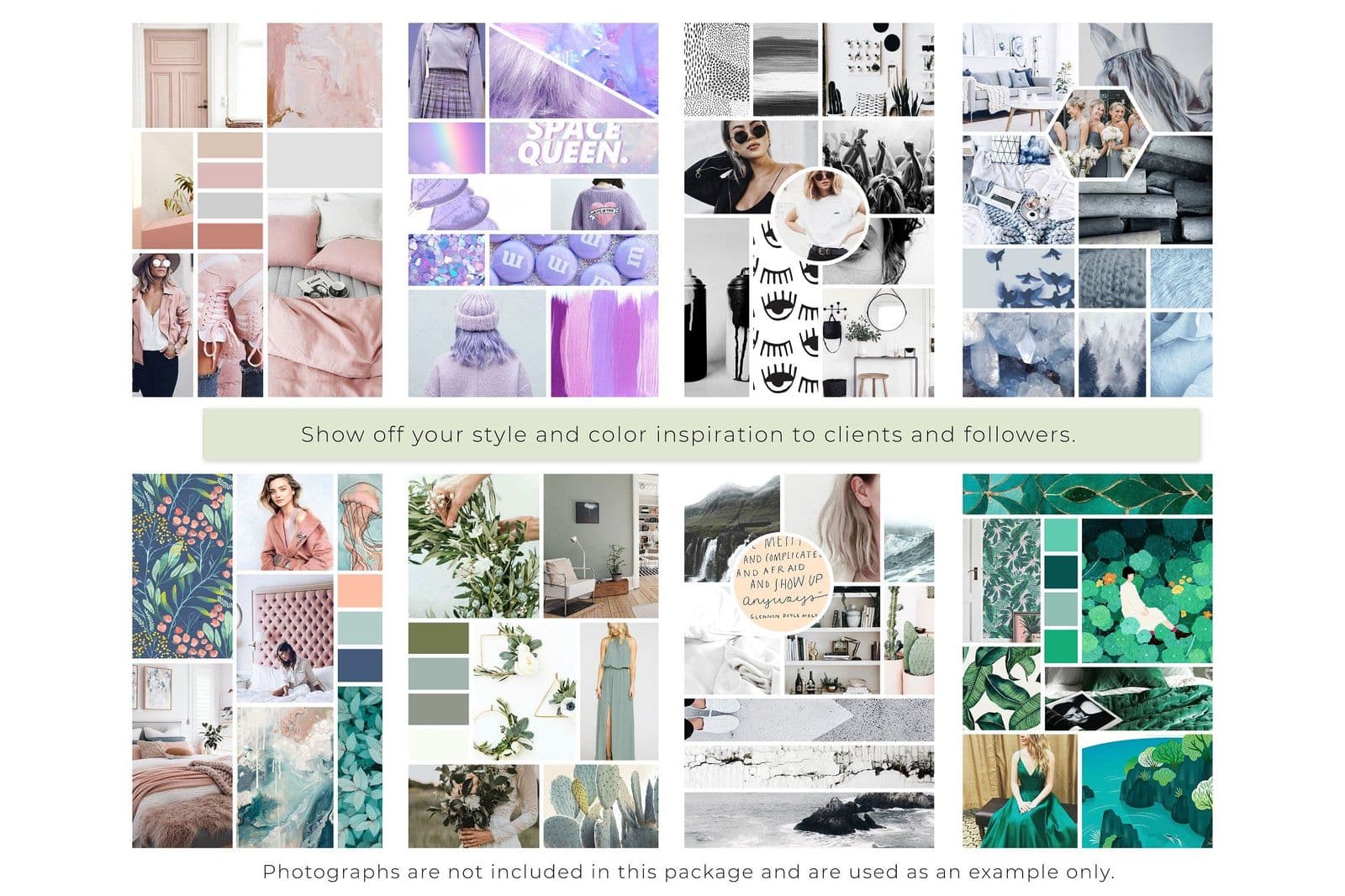 ビジュアル・アイデンティティ・ボードを作成する目的は、コンテンツを計画・作成する際にあなたのチームメンバーが誰も共通認識として参考にできるようにすることです。画像、GIF、キャプション、動画、ストーリーズの投稿まで、すべてのコンテンツがあなたのブランドアイデンティティと一致しているかどうかをチェックすることができます。これをムードボード(Mood Board)とも呼びます。色やイメージ、雰囲気など、言葉にはしきれないアイデアを共有して、認識を一致させるためのもので、もっと身近なところでいうと、ウェディングプランナーに「結婚式と披露パーティーのイメージは絶対これ!」と伝えたり、はたまた新築を建てた後にインテリアデザイナーに「リビングはこんな感じに仕立ててほしい」と顧客がプロにイメージを伝えるための物にも使われたりします。