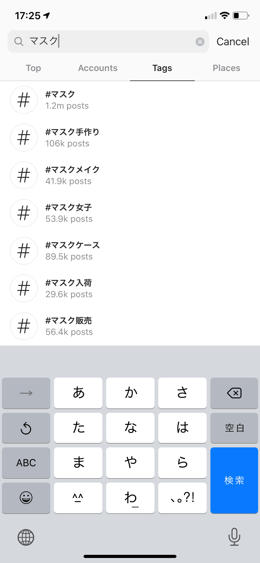 最近の誰もが使っているアイテムといえばマスクなので、#マスクと基本的にカタカナで検索してみました。
