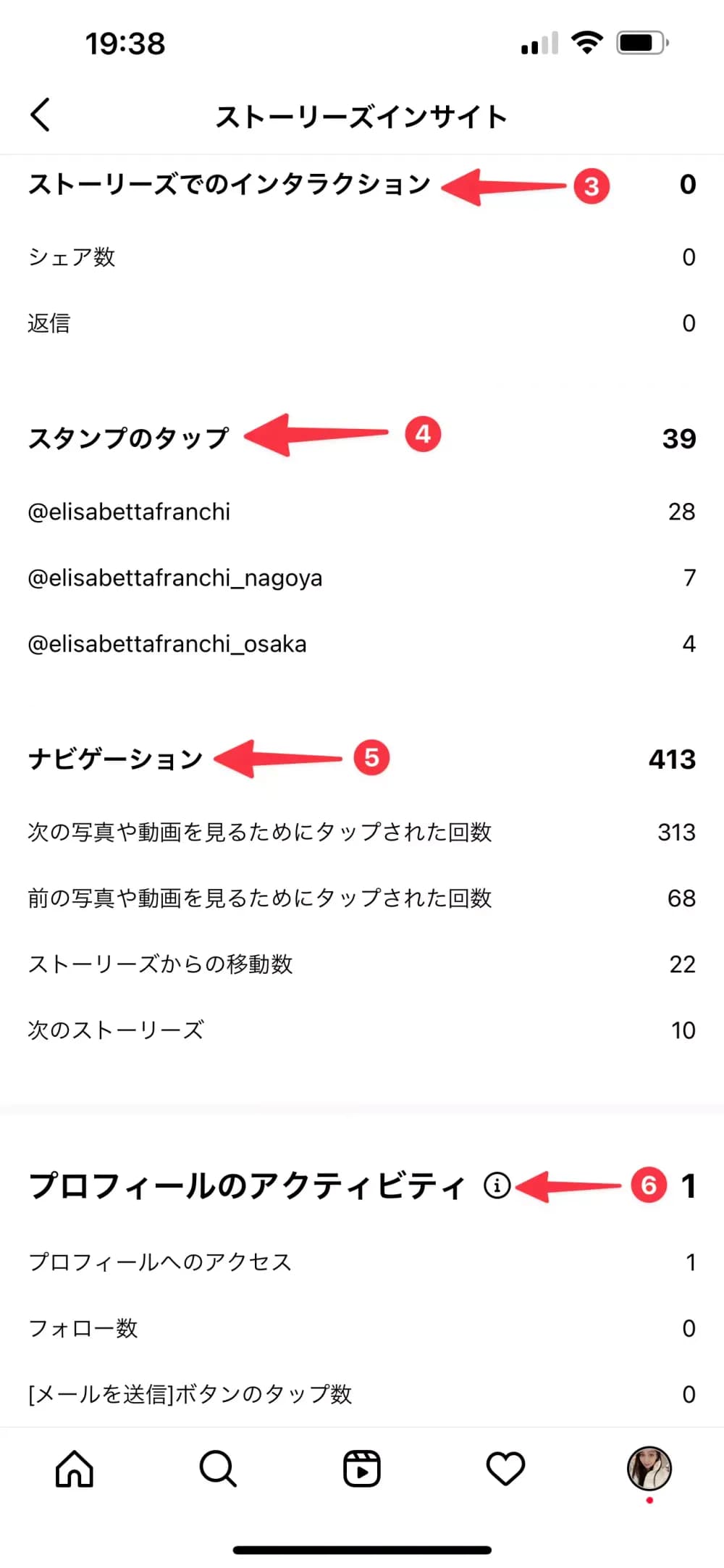 ①のリーチしたアカウントたちが、どのようなアクションをプロフィール上で行なっているかの集計も行ってくれます。