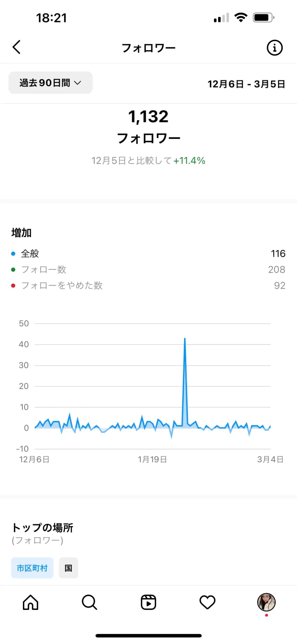 フォロワー数、フォロワー数の増減、フォロワーの属性を住まい、年齢、性別で区切ります。