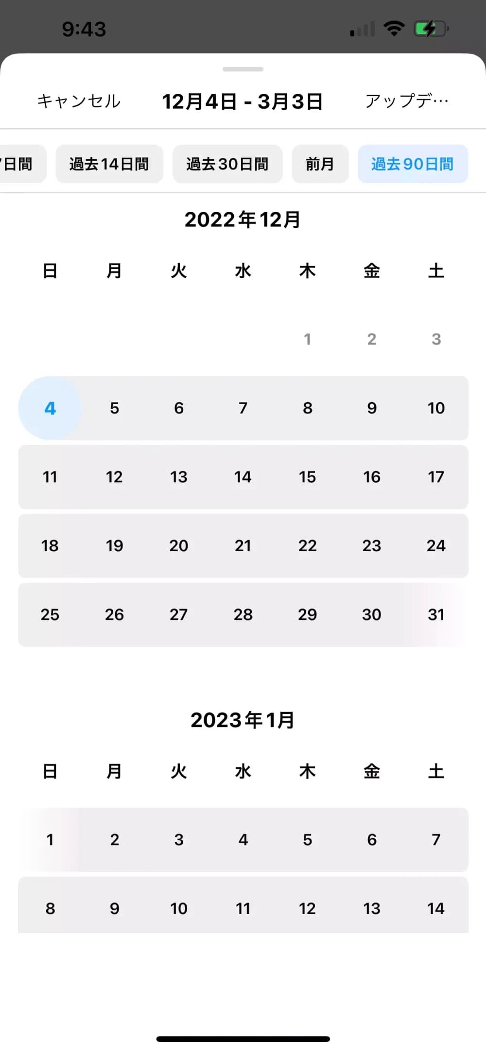 まず左上にデフォルトで「過去7日間」とタブがあり、ドロップダウンすると