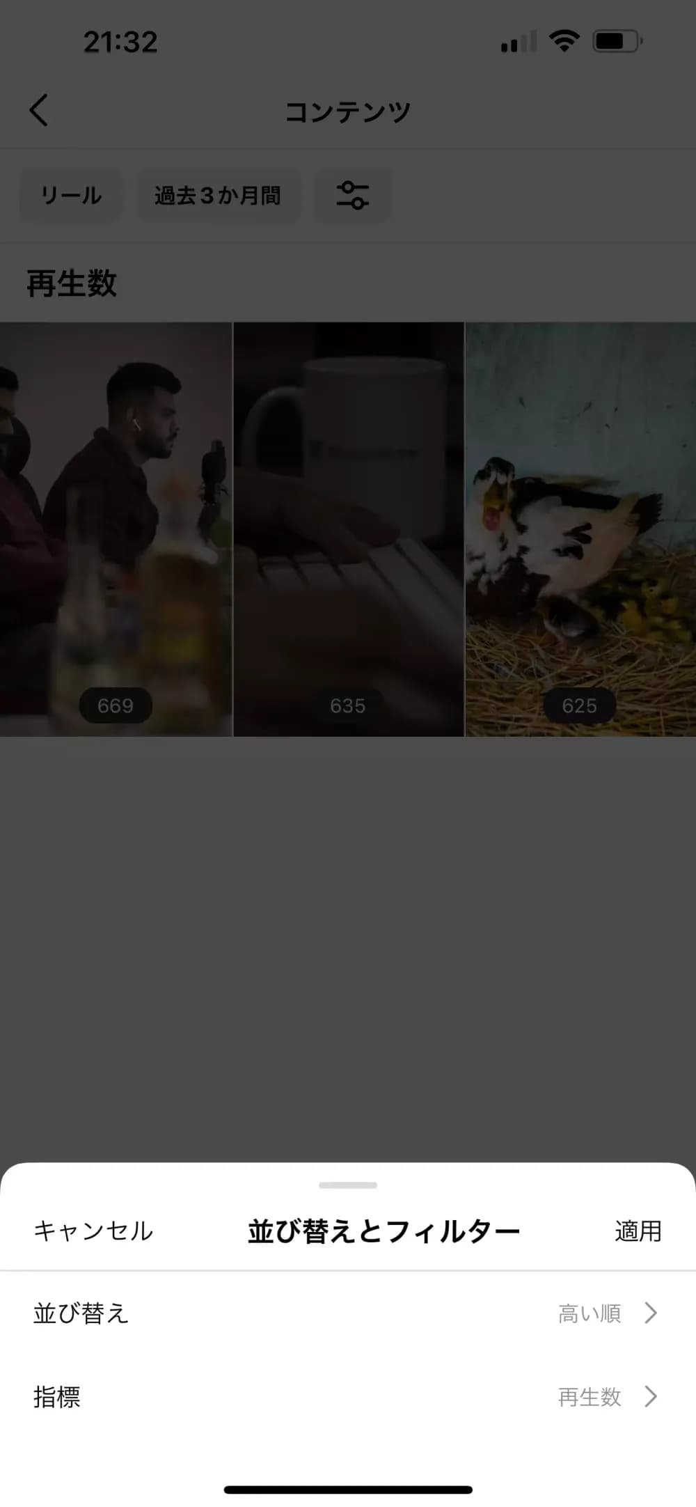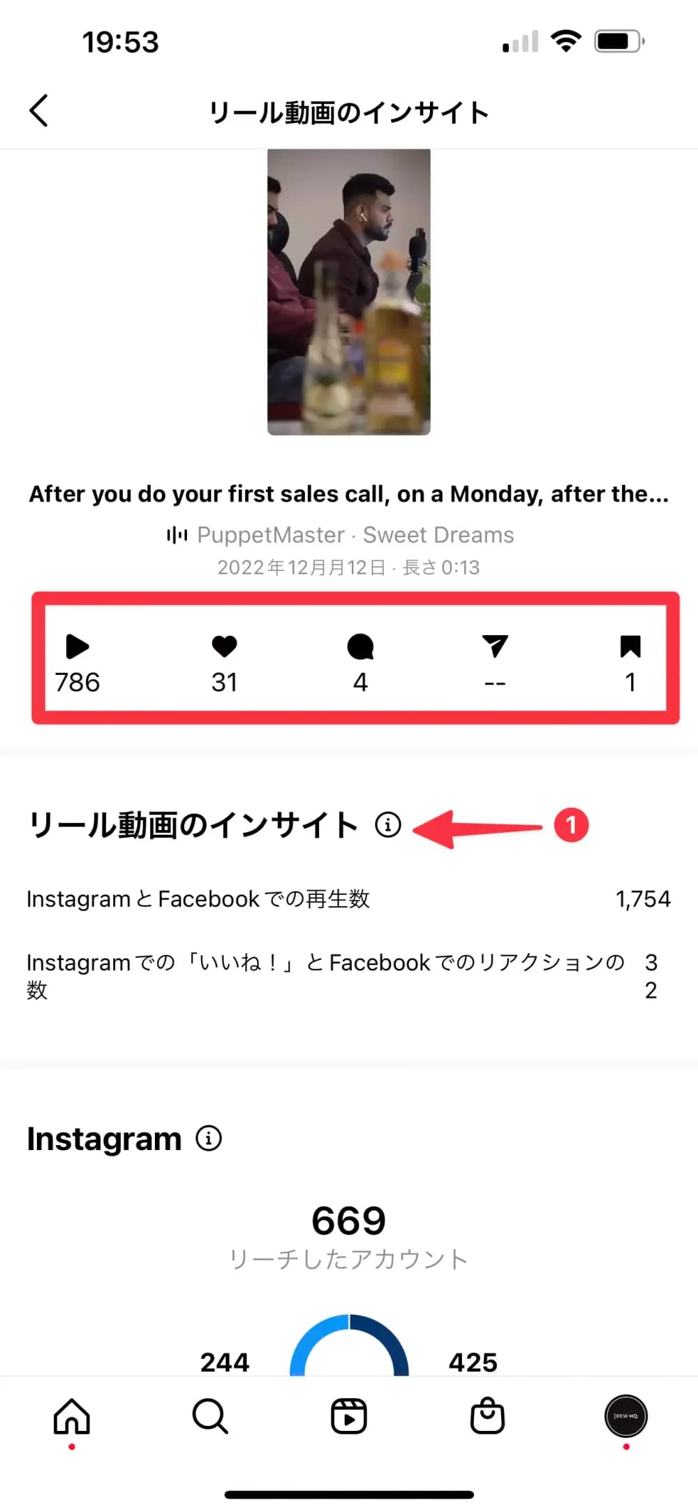 リールの中から、インサイトを確認したいリール投稿をタップします。