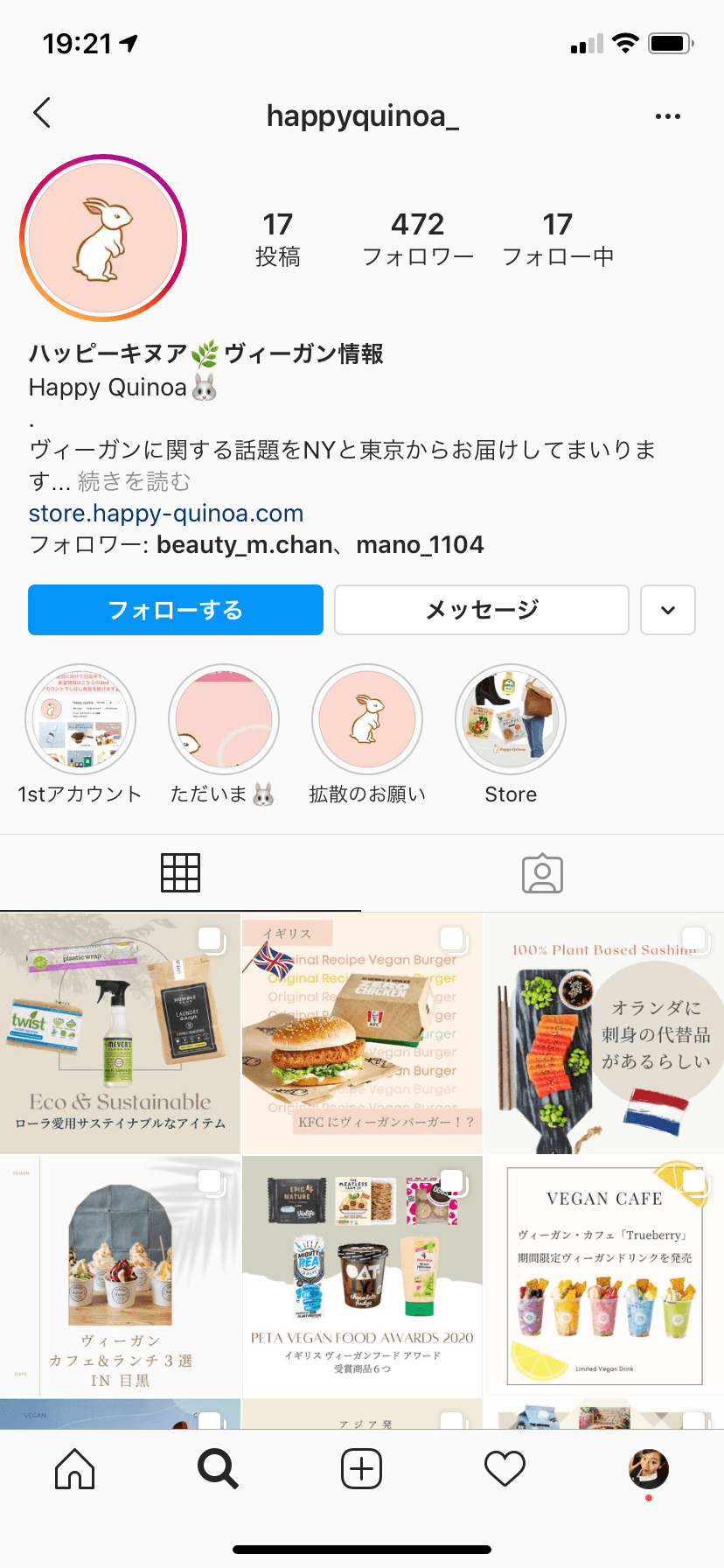ヴィーガンについての情報まとめや、英語学習、法律などなど、Instagramは「写真」だけで訴えるものではなくなってきたのがよくわかる活用方法です。