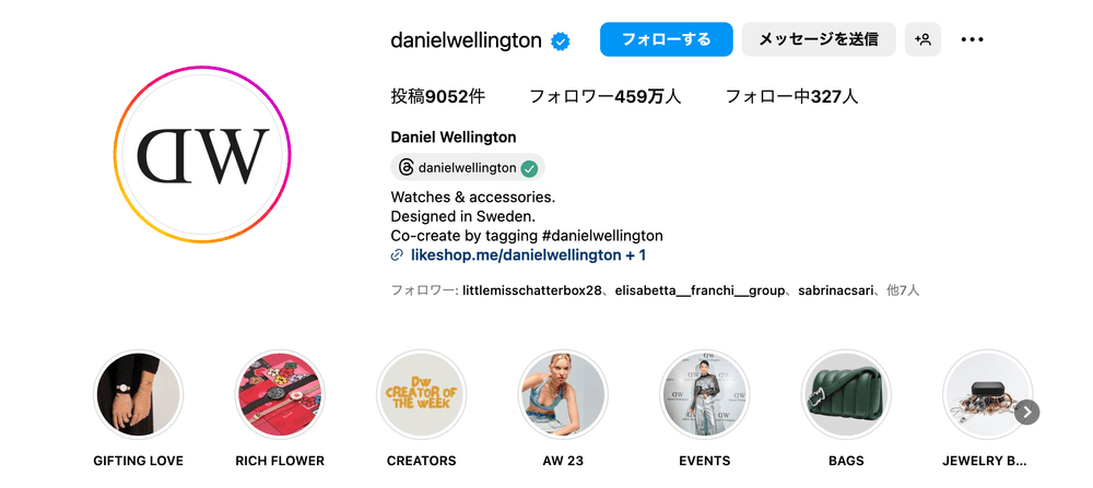 他にも例をご参照ください。例えばスウェーデンの有名時計ブランドDaniel Wellingtonが設置するリンクインバイオのランディングページは開くと、