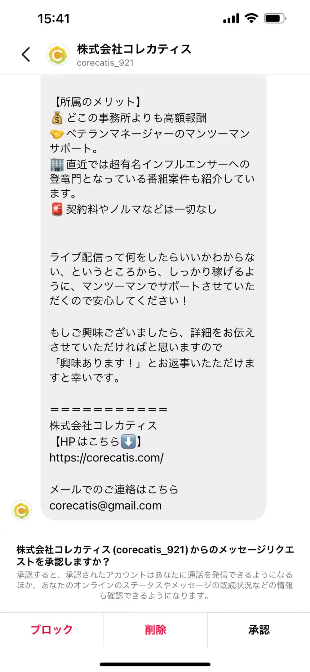 何かの商品への示唆がなくても、メッセージに外部サイトへのリンクがある場合は、スパムである可能性が高いです。アカウントはウェブサイトへのトラフィックを誘導するためだけに存在し、その多くはアダルトかつ安全でない、またはその他の悪質な性質を持つものです。