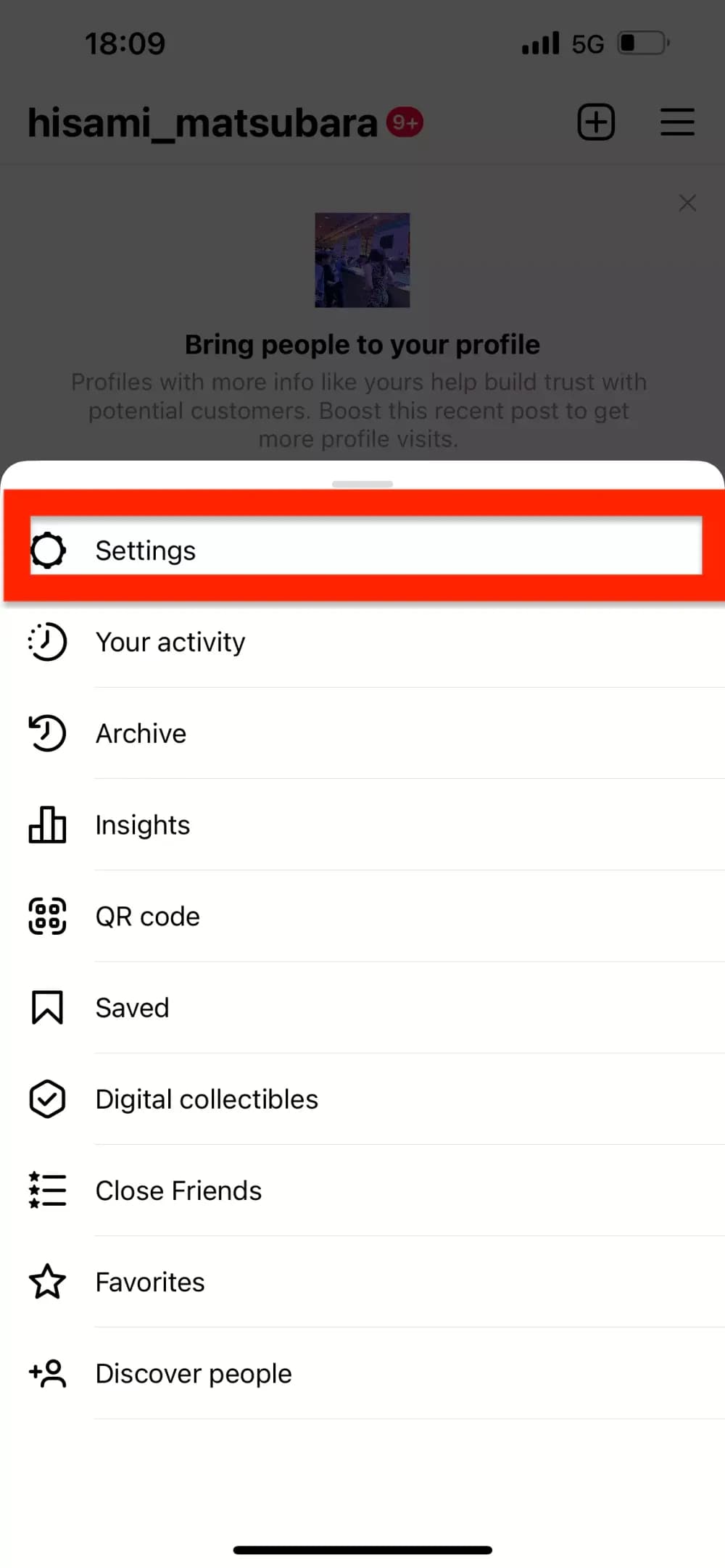Instagramモバイルアプリのプロフィールで、右上の3本線のメニューを選択し、以下の手順で設定します。