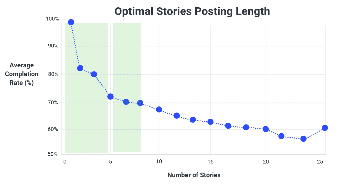 高い完了率(70%以上)を維持するには、1~7個のストーリーを投稿するのが最適であることが最近ではわかっています。