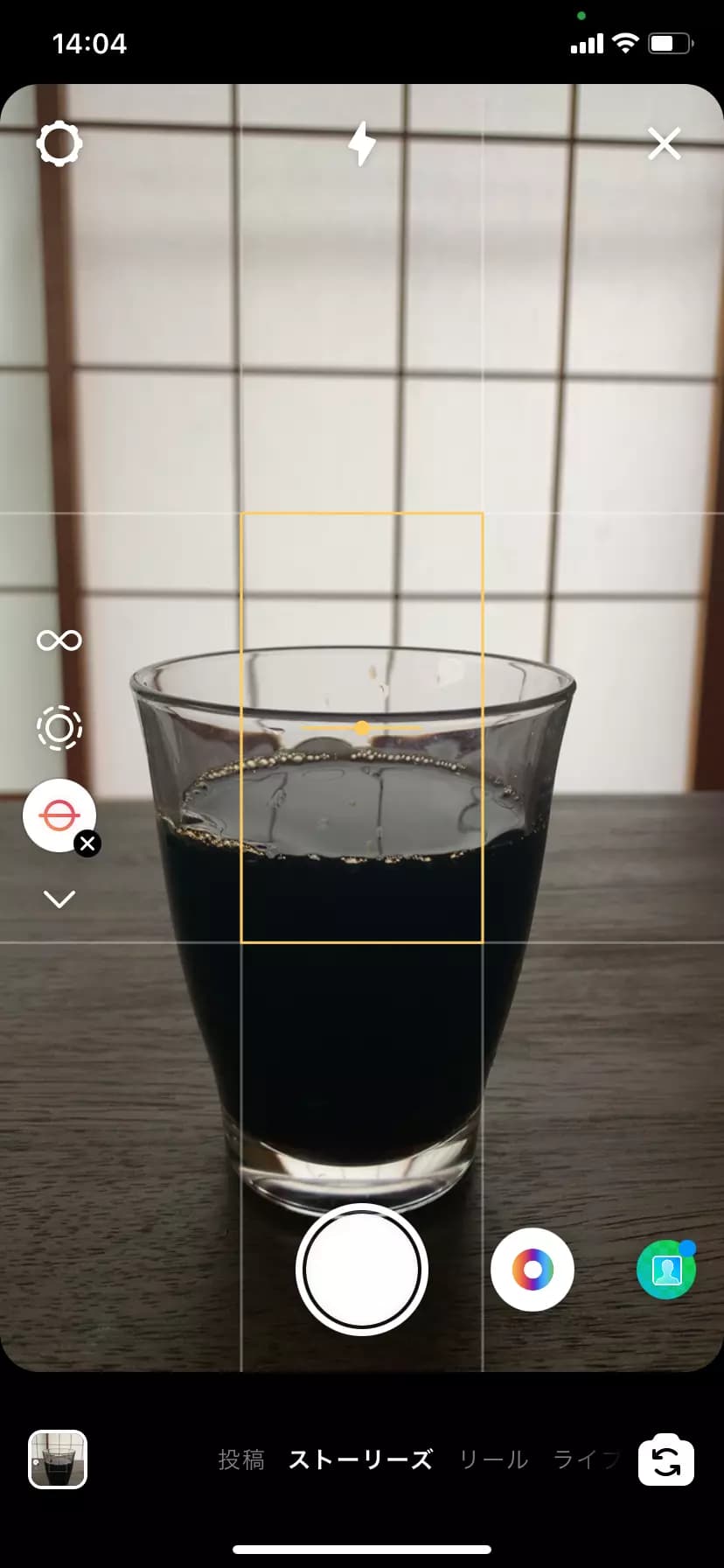 +マークをタップすると、Instagramでできる投稿の種類が4つ表示れますので、ストーリーズを選択します。ストーリーズを選択するとそのままカメラが起動します。