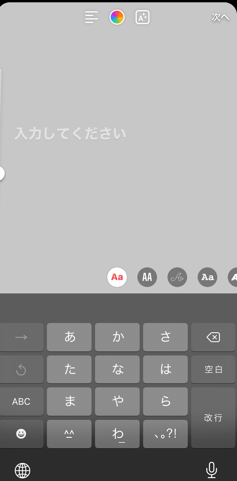 テキストの入力ができます。打ち込みおわったら右上の次へをタップして送信先を選ぶことで完了します。