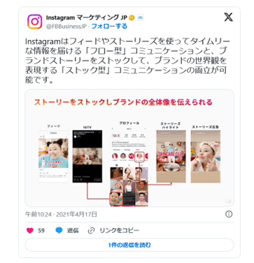 ハイライトという名の通り、見逃したユーザーのために自社ストーリーズに込められた貴重な情報を必ずシェアしましょう。
