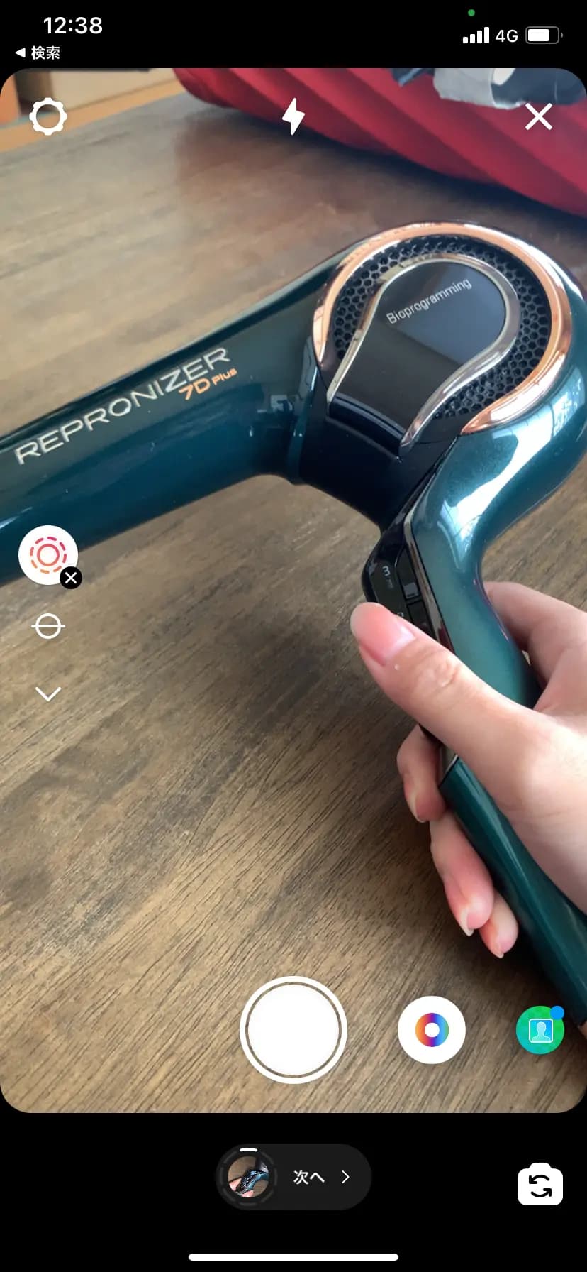カメラモードに切り替わるので、最大8枚までの撮影をしたあと個別に編集したりしたのちに、次へをタップすることで投稿公開できます。