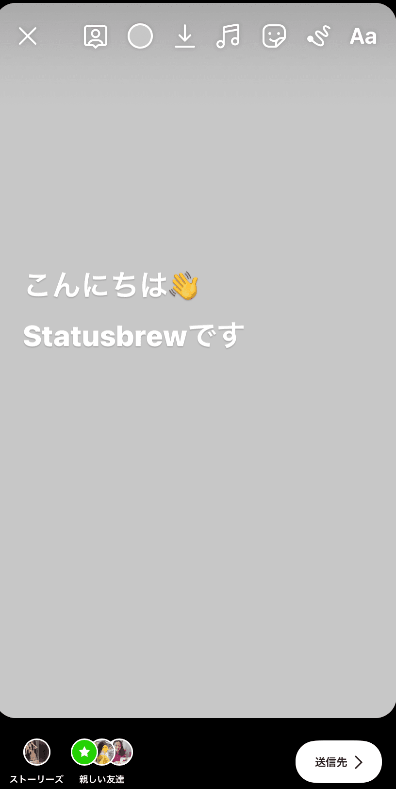 「顧客リスト」として作成したら、ストーリーで下記の例のように公開範囲を先ほどの「親しい友達」にして公開しましょう。