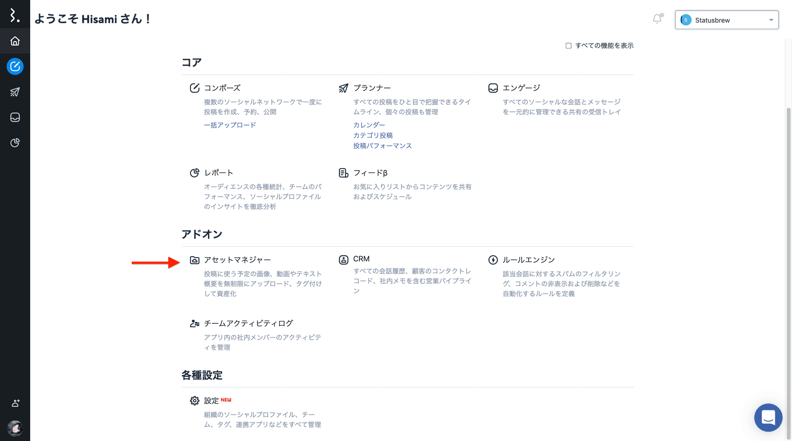 では早速Statusbrewのダッシュボードからアセットマネジャーに移動しましょう。こちらがおなじみのダッシュボードです。