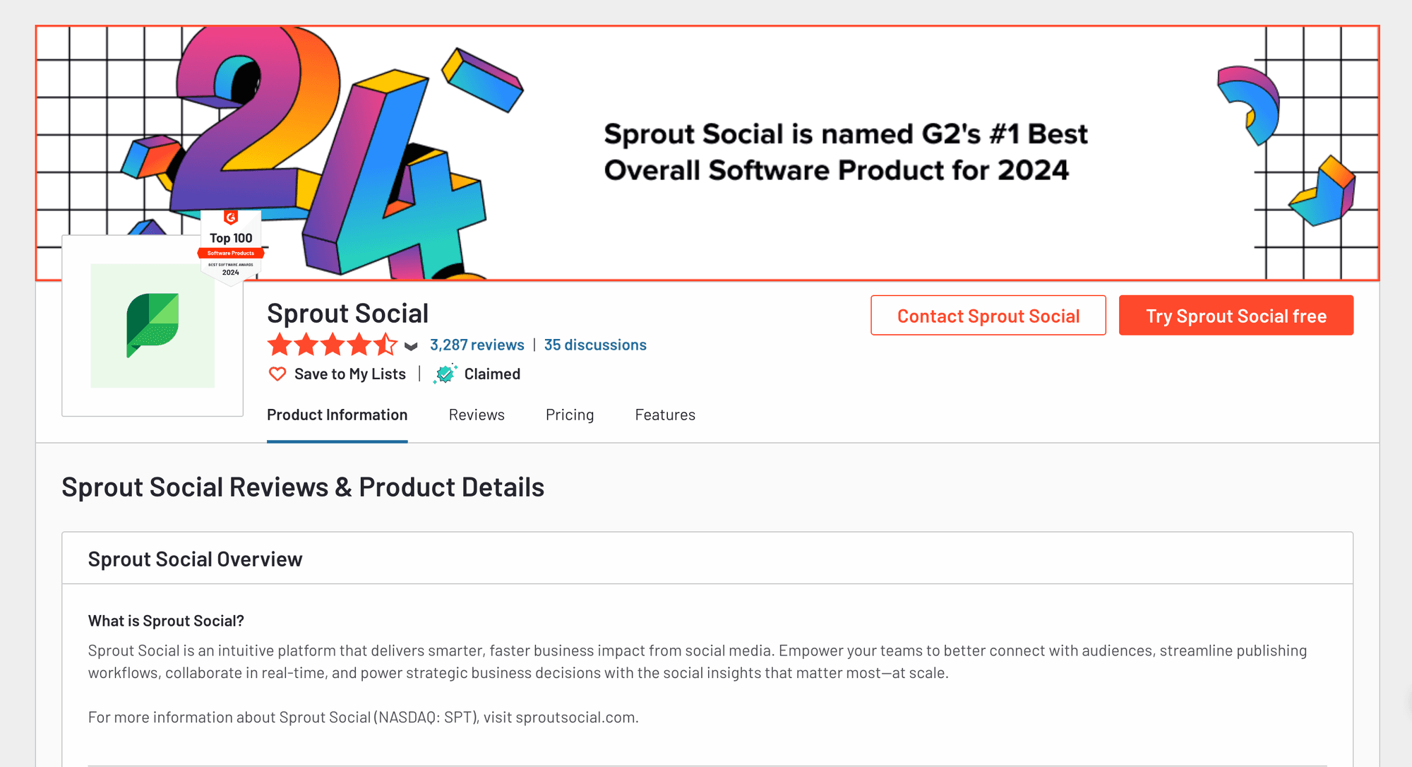 ソフトウェア評価サイトでCapterraと同様に権威のあるG2が「2024年最も優れたソフトウェア賞」にも選んでいるツールです。これはソーシャルメディアマーケティングツールという部門ではなく、すべてのソフトウェアの上で選んでいるという非常に名誉なアワードでした。
