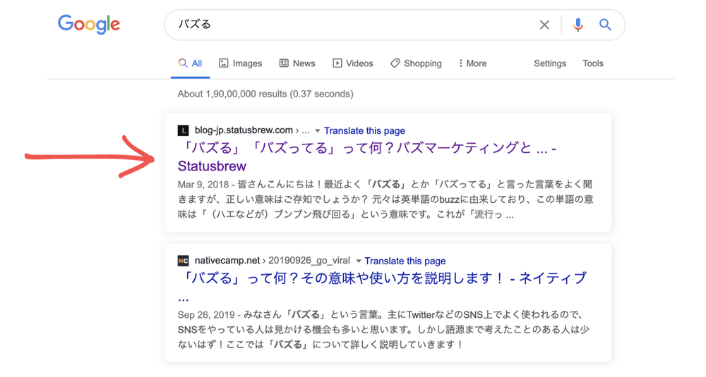 例えば私たちStatusbrewはソーシャルメディアマーケティングプラットフォームを提供する企業です。ユーザーがどうして私たちを採用(Hire)するのか、一番必要とされている機能に関連するキーワードをGoogle検索かけた時に、検索結果のトップに躍り出るようにオプティマイズしています。こちらは日本以外の海外のお客様向けに最適化したものです。ランディングページURL、見出し、コピーでこれらのキーワードを特定して焦点を当てることは、ページのオーガニックランクを向上させるための1つの手法です。 ページのランクが高いほど、Googleのような人気のある検索エンジンからページにアクセスするサイトトラフィックが多くなります。