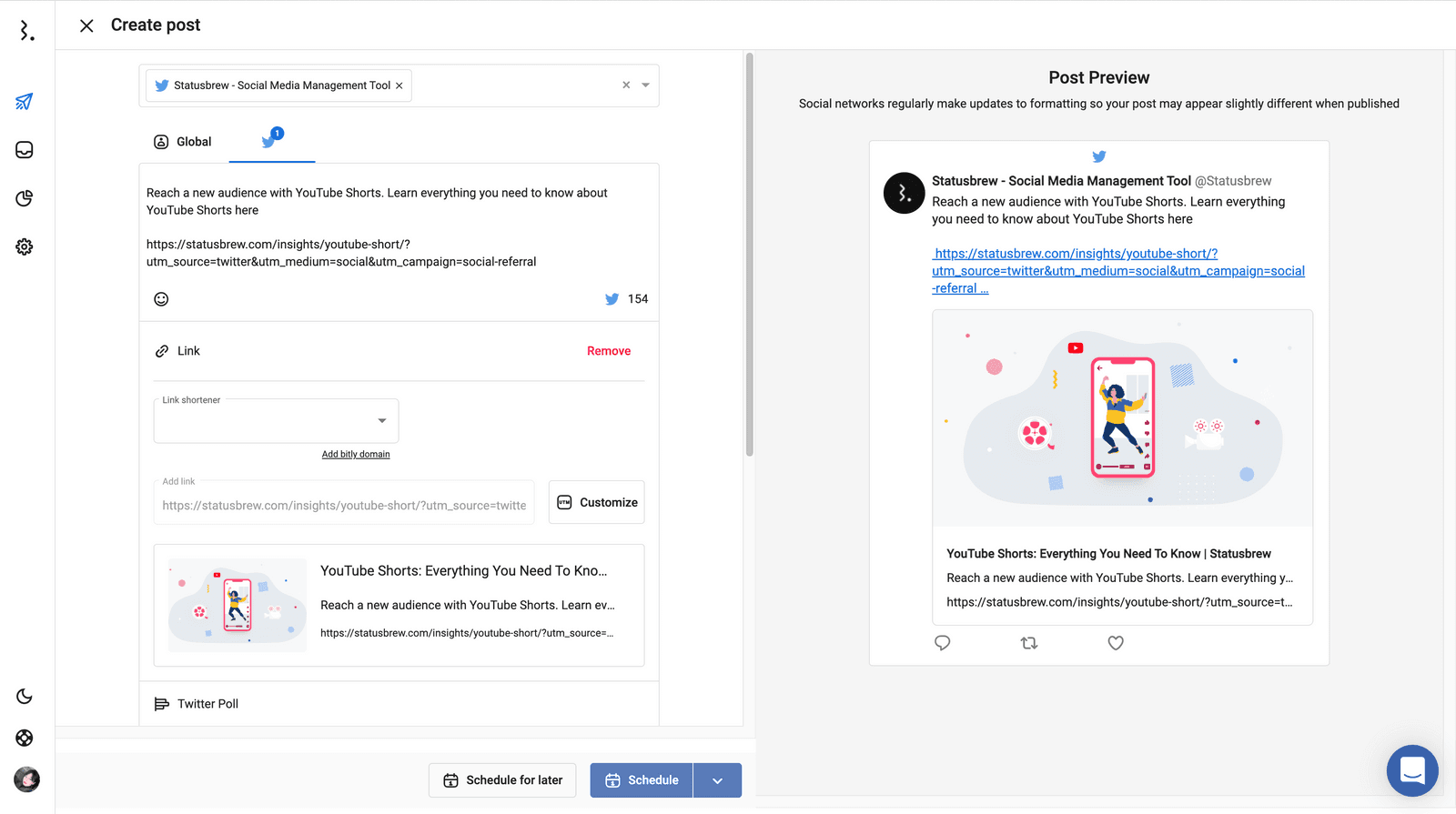 StatusbrewのようなソーシャルメディアマーケティングツールでTwitterを管理すると、ネイティブにはない機能が豊富でよりパフォーマンスが加速します。