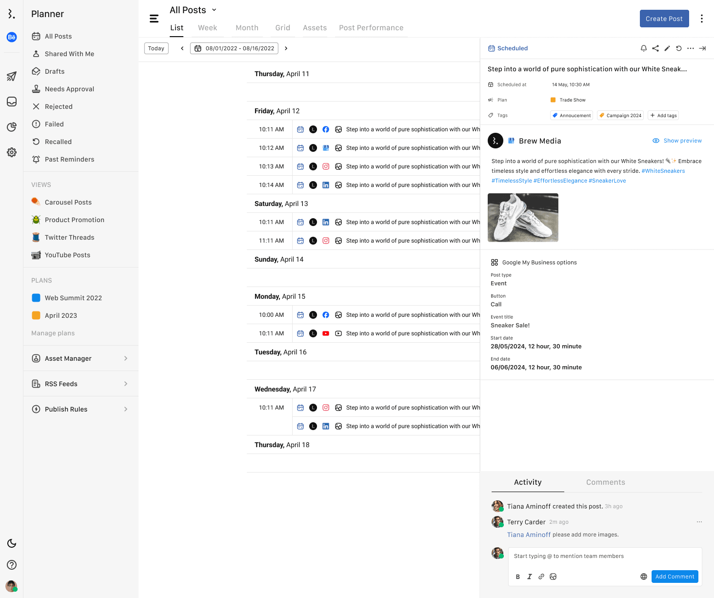 3. 強力な機能セットStatusbrewは、ソーシャルメディアの投稿管理、エンゲージメント追跡、詳細なレポート生成など、必要な機能を網羅しています。これにより、ブランドのオンラインプレゼンスを効果的に管理し、顧客とのエンゲージメントを高めることができます。