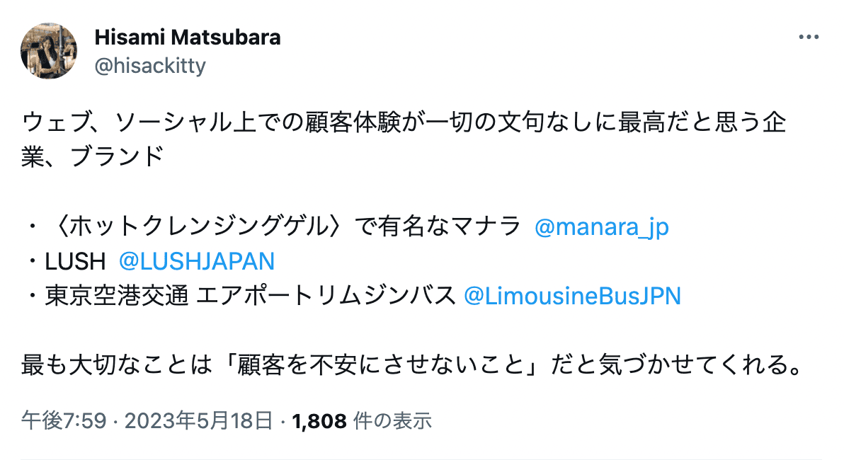 通常ポジティブなメンションは、ブランドへのアピール以外に、自分のフォロワーに「このブランドを見に行って欲しい」要素も含まれます。