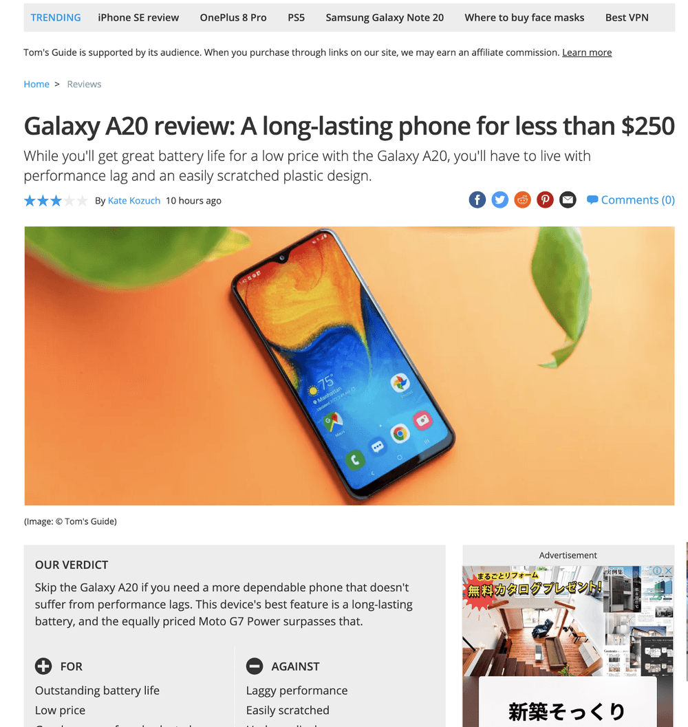 筆者の中で感心するレビューサイトはアフィリエイト発祥の地、アメリカのものになりますがTom’s Guideというテクノロジー(スマホやPCその他部品)のレビューを専門とし、詳細で公平なレビューが魅力のTom’s Guideです。アフェリエイトリンクを含んでいますので、ぜひチェックしてみてください。