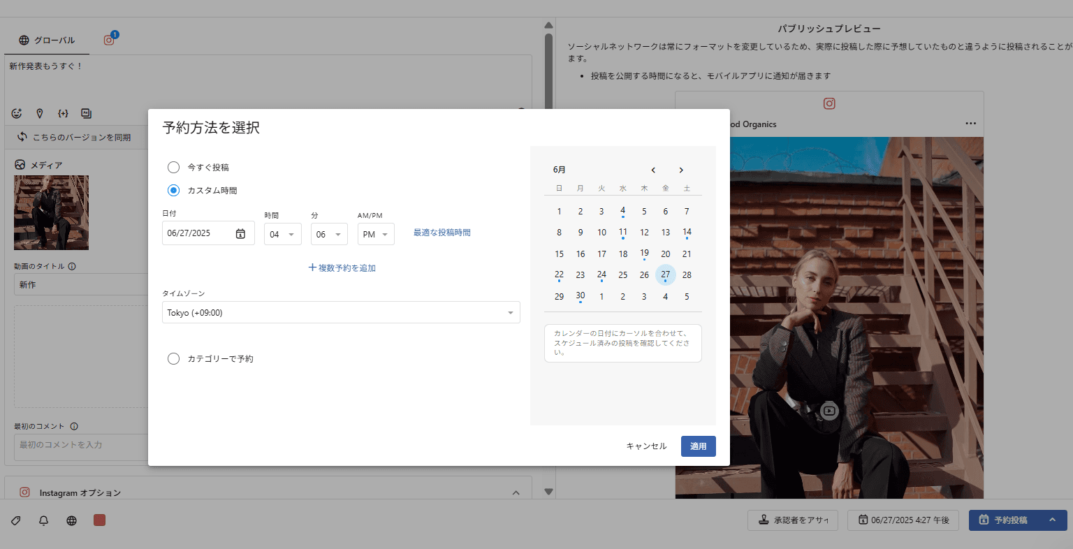 最適な投稿時間を設定することも、あらかじめ作成しておいたカテゴリーで予約することも可能です。