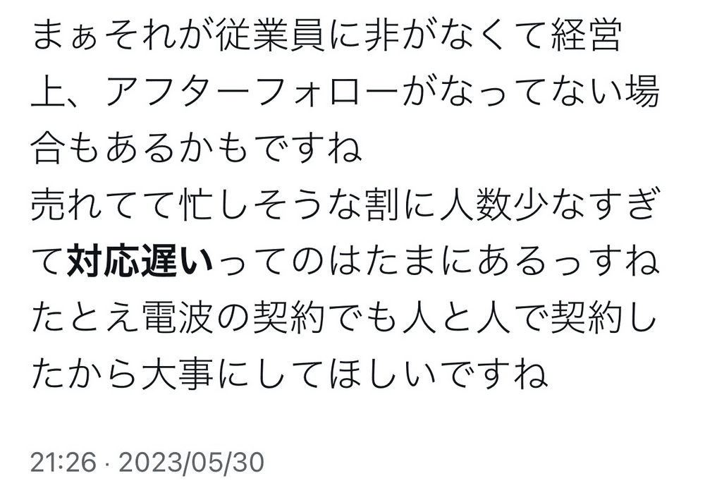Twitterで’’対応遅い’’をキーワードに検索すると、沢山の対応が遅いと顧客に見なされた例が出てきます。どのくらいの時間が経過すると、対応が遅いと見なされるのでしょうか。