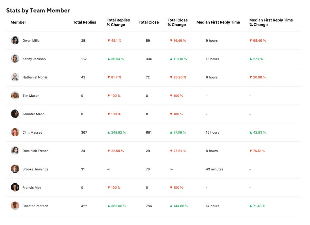 Statusbrewの'Team Engagement'と'Leaderboard Report'により、顧客サービスチームがブランド全体でどのように顧客からの問い合わせを処理しているかを分析・監視することができます。