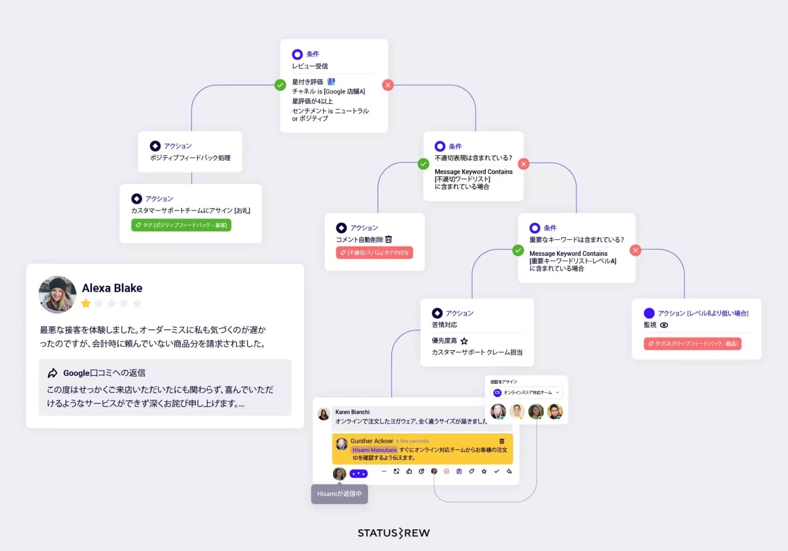 Statusbrewはソーシャルメディアのレビュー管理とカスタマーサポートを同時に行うための高機能ツールです。