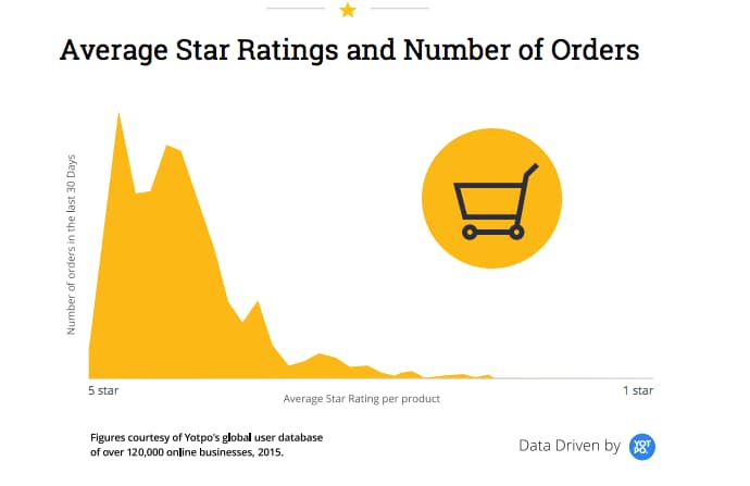商品レビューの 「星の数と注文数には強い相関がある」 と言われています。