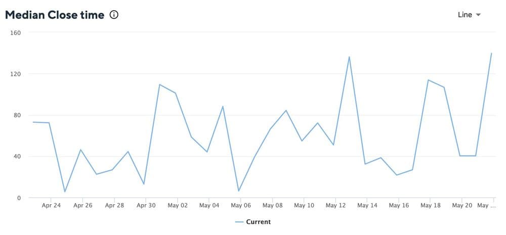 数週間または数ヶ月間のパーセンテージの増減を比較することで、顧客の問題を迅速に解決するチームの能力について、データに基づいた推論を行うことができます。
